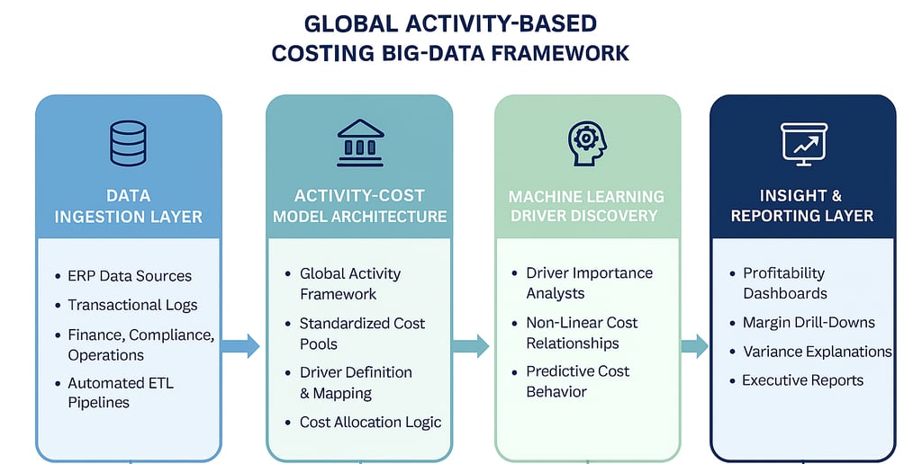 The Global ABC Big-Data Model transformed the client’s cost management capability from static reporting to predictive, transaction-level profitability intelligence.